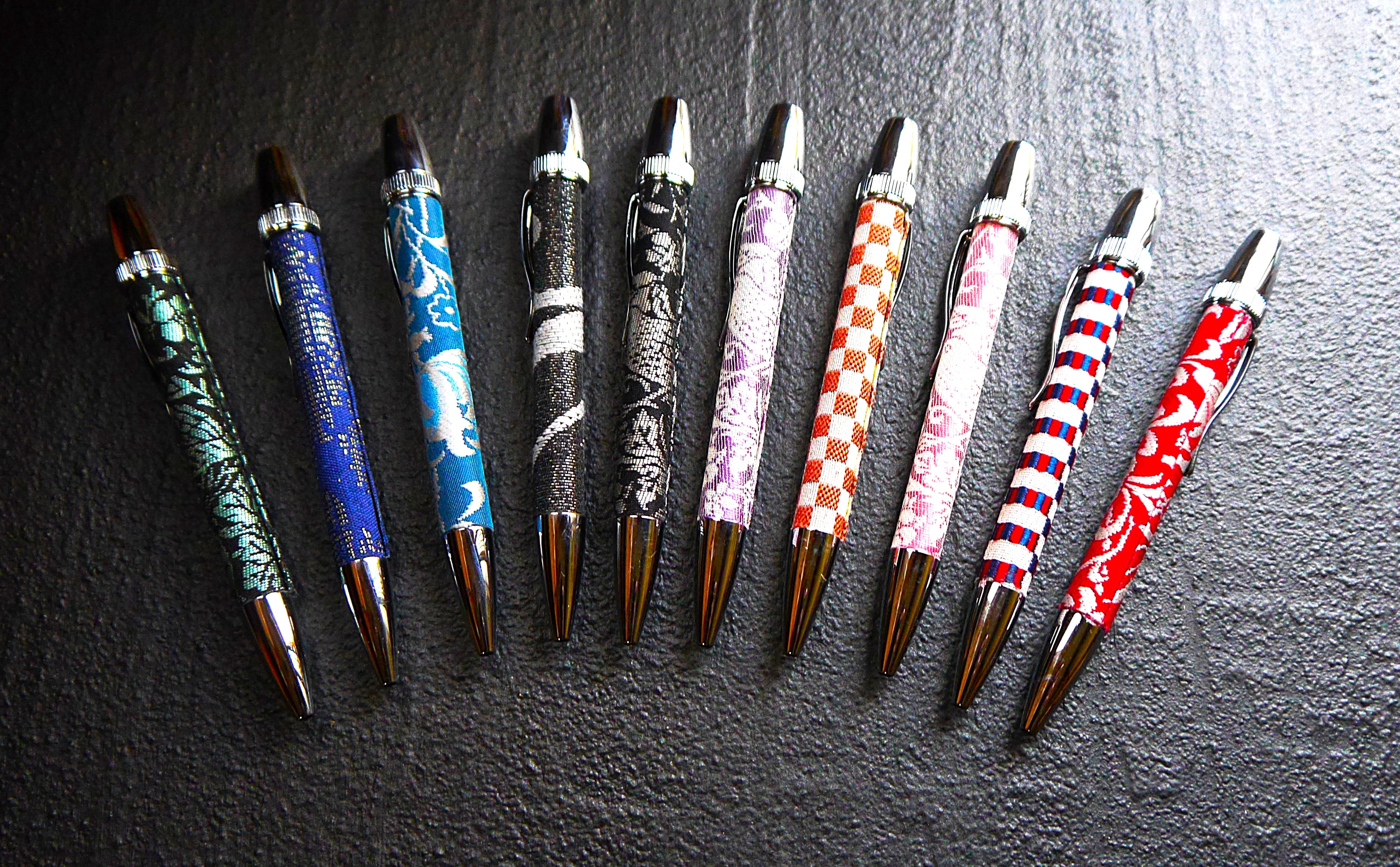 西陣織、京印伝、銅、革—— 日本各地の職人が手がける素材を、日常使いのボールペンに宿しました。2ヶ月に一度、新しいペンが届く。届いたら、前の一本を返送用封筒に入れてポストへ。月額950円〜で、職人の手仕事を日常に。