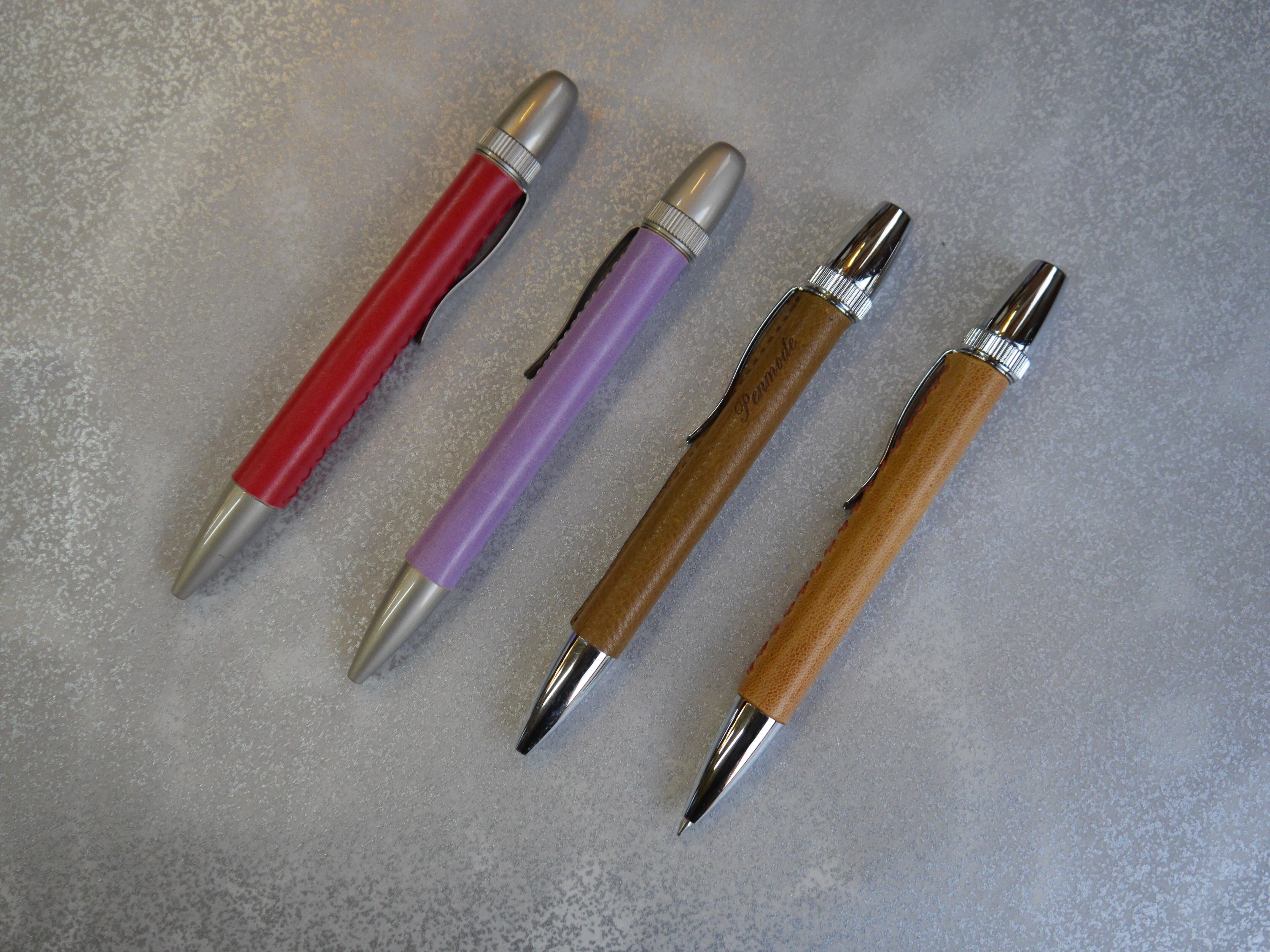 丁寧に編み込まれた革製ペン。